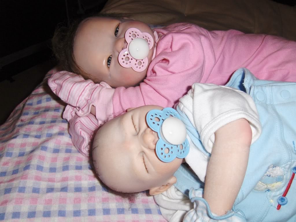 On our way through the registers, though, we spied a tower of five or six “kids” piled up by Customer Service. Aha! Some greedy, wicked people had tried to buy more than their permitted allotment of dolls, and there they were being held there, in protective custody.