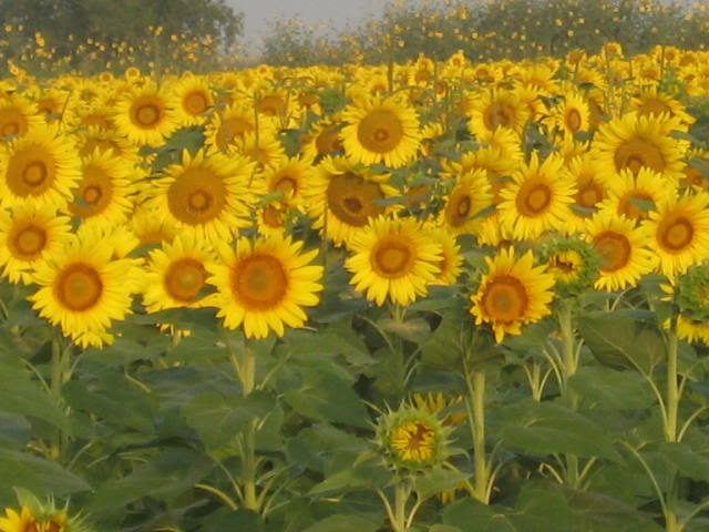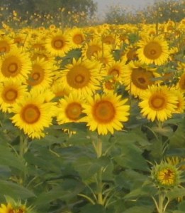 Around the bend, still near the prison, there was an enclosure of buffalo. I think they are still there. I think I saw one, from far off. And on the highway, on our way back, we found sunflowers. They were big and bright. It must have been fall.