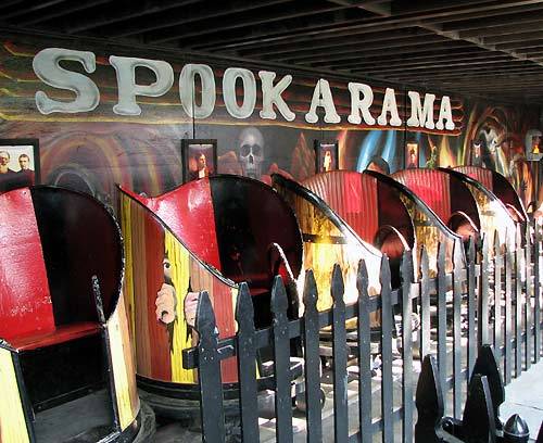 Spook-a-rama, Coney Island: When I rode on this a couple of summers ago, I was so thrilled I smiled all day. This is the lamest, most glorious thing. Ancient tracks and ride vehicles that make you feel like it’s 1945, and a ride through the crummiest Halloween robots flailing around pathetically. Still, I screamed the entire time. With delight. I don’t think anyone else rode this ride that day except for me and my dear friend. Because everyone else– they were fools. Queue: I don’t think there is ever is a need to wait, as there was no need on 4thof July weekend, when the beach was standing room only. Visuals: 7 (so bad it’s great) Story: 5 (it’s a dada sort of story) Charm/thrill:8 Total score: 20