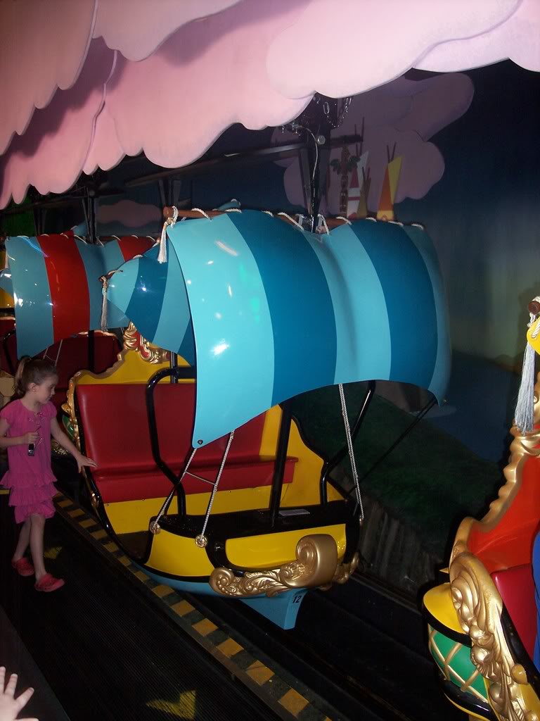 Peter Pan’s Flight, Disney World, Disneyland: The moment you fly out the nursery and over London—always amazing. I love seeing the mermaids looking all sexy, and I love seeing Wendy with her stiff upper lip, standing on the end of the plank. I love the lost boys sitting Indian style around the fire that is not what made the red man red. At the end, Wendy claps her hands, “Good show, Peter!” and Peter Pan steers the ship away. At the end, your ship will clonk onto the railing that brings it home. You’ll only be a little sad. It was worth waiting so long for.