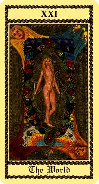 Death was a svelte skeleton striking a dance move atop the ocean. There were some heads floating in the ocean. They looked peaceful, though, like, Oh, well, these things happen. The Star was a naked Botticelli blonde woman crouched by a stream. The 10 of Wands showed an s-shaped path, a donkey with his masters behind him, approaching, though he can’t quite tell, robbers in the bushes.