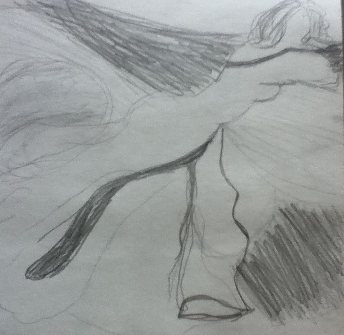 Someone asked a guard where to find the Ashcan School, and I happened to find it, too. There was a picture of kids feeding swans that was a perfect smearfest, definitely swans and kids and a moment, but nothing more. I found another piece I wanted to draw, and just about wore out my pencil. I hadn’t bought a sharpener.