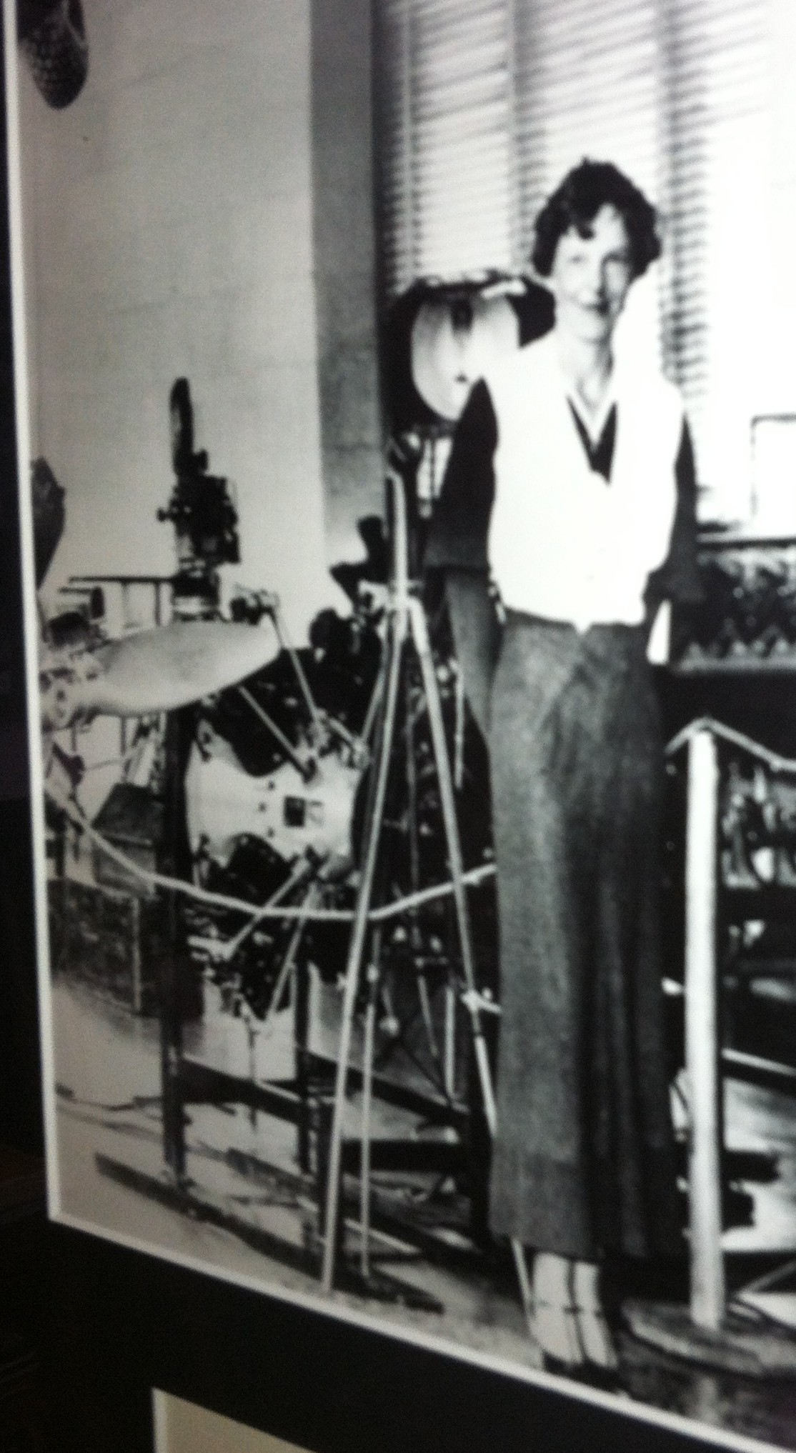 I rang a bell, and the woman who answered asked for $5. I took a brochure and looked around Amelia Earhart’s birthplace, the room she was born in, the room that was hers as a girl. The woodwork is dark and thick. Most of the walls are crammed with photos of Earhart, paintings of her, framed telegrams and letters and such.