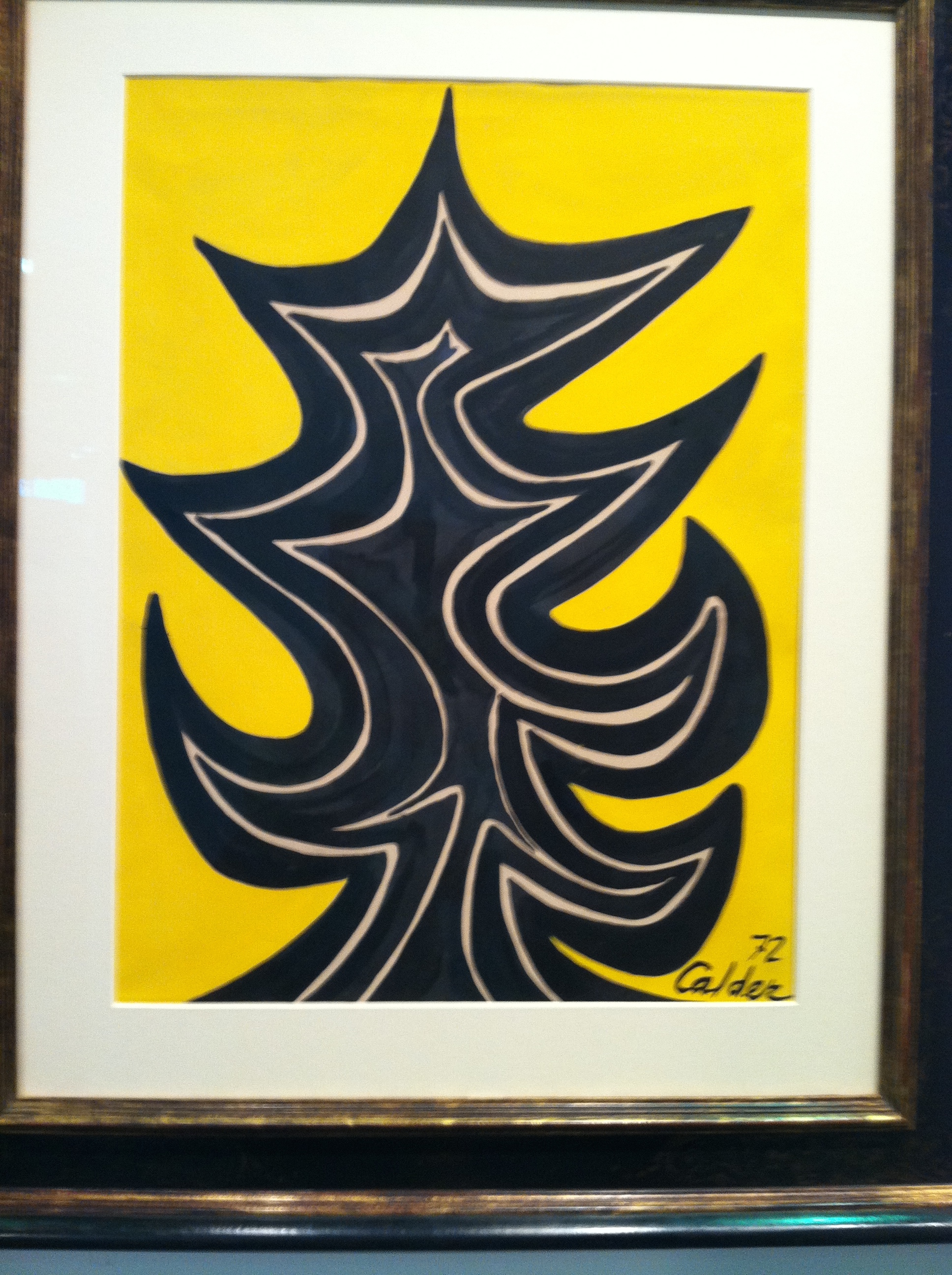Posted on March 10, 2014March 10, 2014 by schurmane Here’s your last three, and I’ll leave you alone. A pretty yellow Calder, for Christmas (I should put it on my cards next year, no?). A Franz Kline piece called “Rocker.” And one of my final favorites, by Beatriz Milhazes. Share this: Click to share on Facebook (Opens in new window) Facebook Click to share on X (Opens in new window) X Click to email a link to a friend (Opens in new window) Email Like Loading... Related