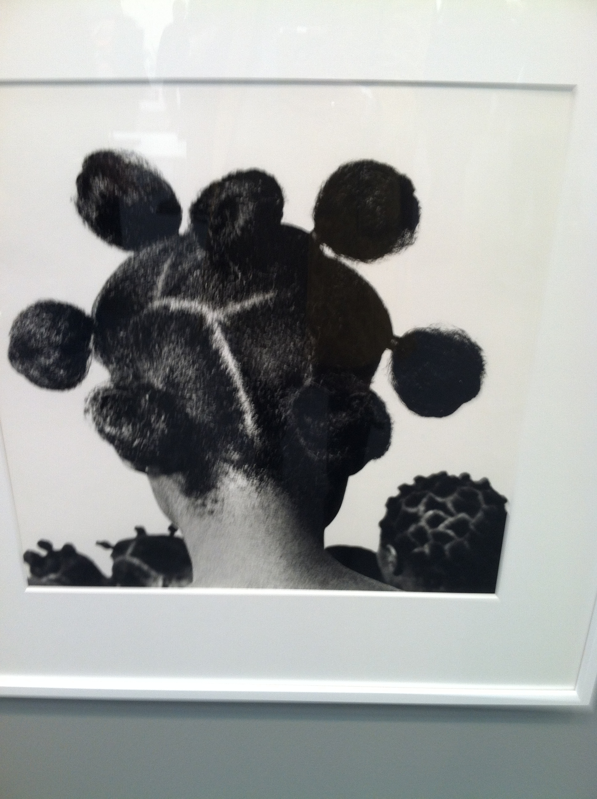 Third: because I am a bad person, I forgot to photograph the name of this artist, but it was a set of nine photographs, seven of them the beautiful backs of black women’s heads, showing off their complex hairstyles, and one in profile, and one from the front. So many of them as objects, as what people might ask them about, or wonder about, instead of themselves, troubling, maybe. They were lovely, though, all of them, and this one rather tree-like, speaking of trees. Dr. Seuss trees.