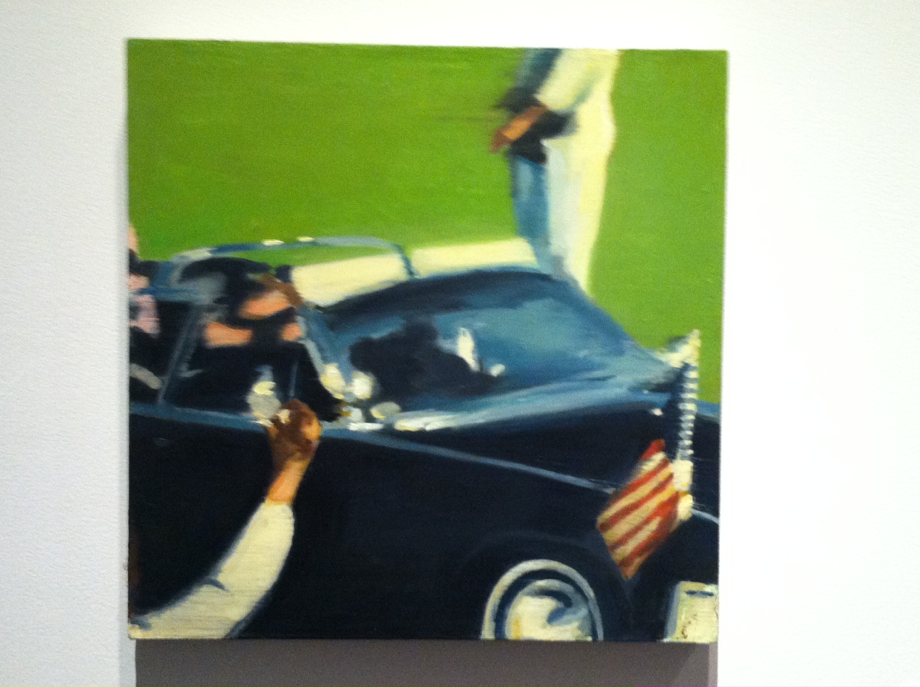 Soap and stones piece is “Used and Worn” by June Ahrens. Kennedy assassination painting is “Continental II” by Christopher Brown. Both currently up at the Kemper.