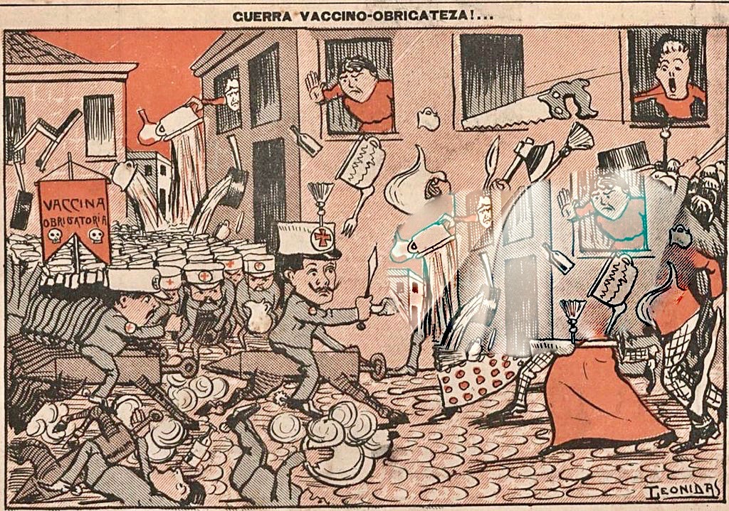 When Cruz got a law passed that made the smallpox vaccine mandatory, some people, including members of the Brazilian military, responded by taking to the streets and raising hell, breaking and burning and taking various things. Factory workers and trade unionists unfortunately worked against vaccination requirements, squandering their unity on the wrong cause.